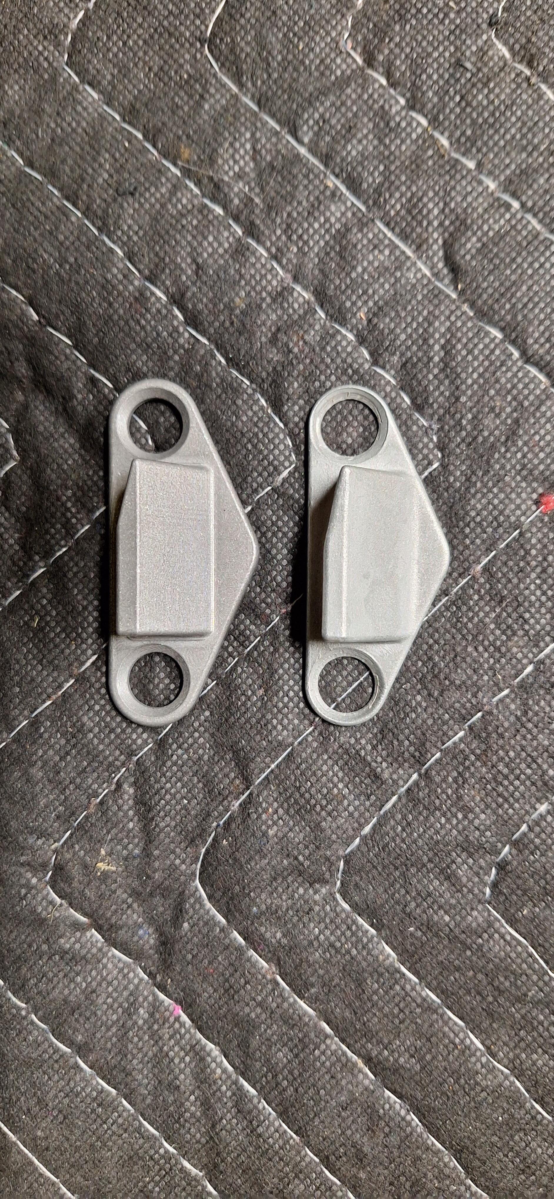 The early 240Z had handed dove tails for the doors, a left and right sided fitting were required. Part numbers R 80530-E4101 and L 80531-E4101. https://www.carpartsmanual.com/datsun/Z-1969-1978/body-240z/body-side-trim-side-window/62 On later cars there were replaced with a symmetrical part that fit on either side. 80530-N3400 Biggest problems with the early ones were the tabs where the screws went through breaking off. Replacement factory parts haven't been available for years. Fortunately I have a set of unbroken originals which we modelled up and reproduced in aluminum. We added an extra 1mm around the screw holes to prevent the cracking and breaking. Just picked up the first samples to fit check and they work just like the originals. The original one is on the right, you can see the slight increase in thickness around the screw holes on the left one. Also modelled up and replicated the original plastic grease reservoir for the steering rack. I'll post details in a separate thread.