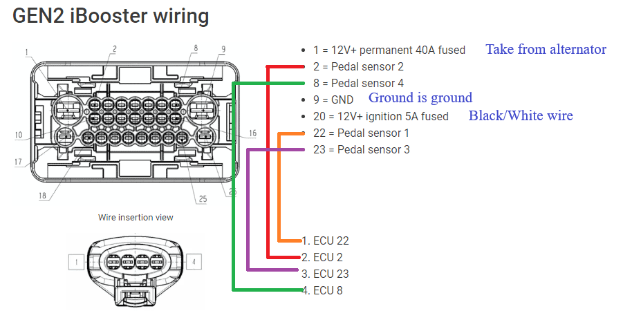 The other connections are just as listed in the drawing. The other 19 pins in the big connector are left blank.