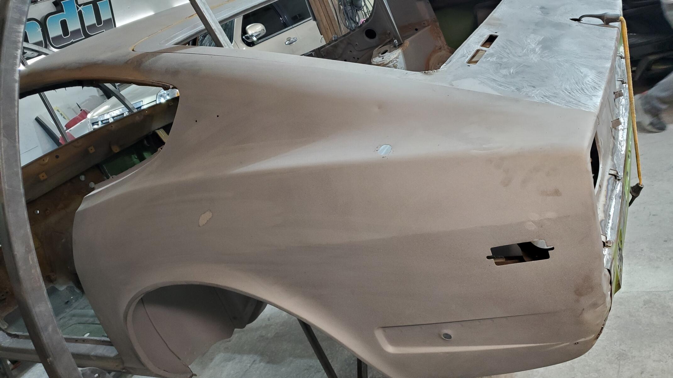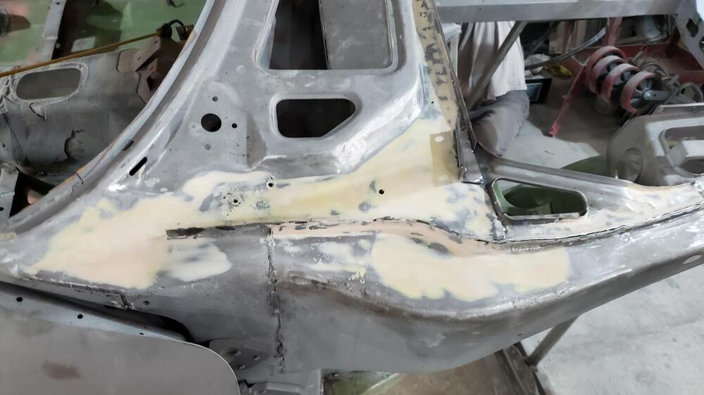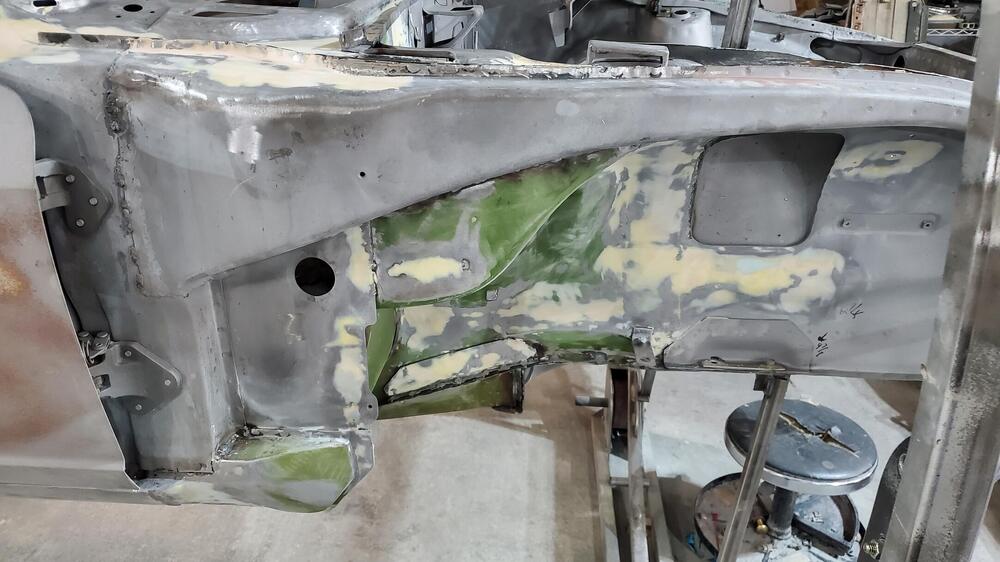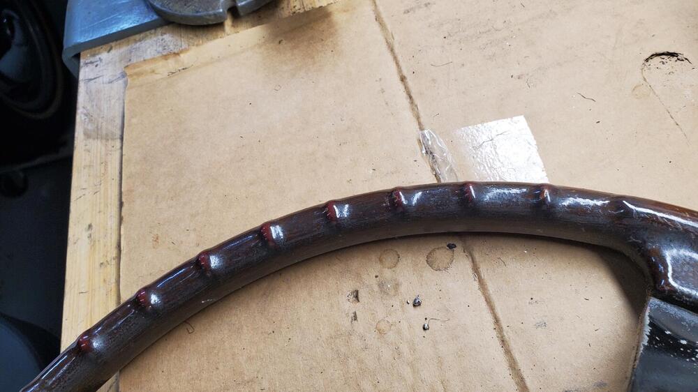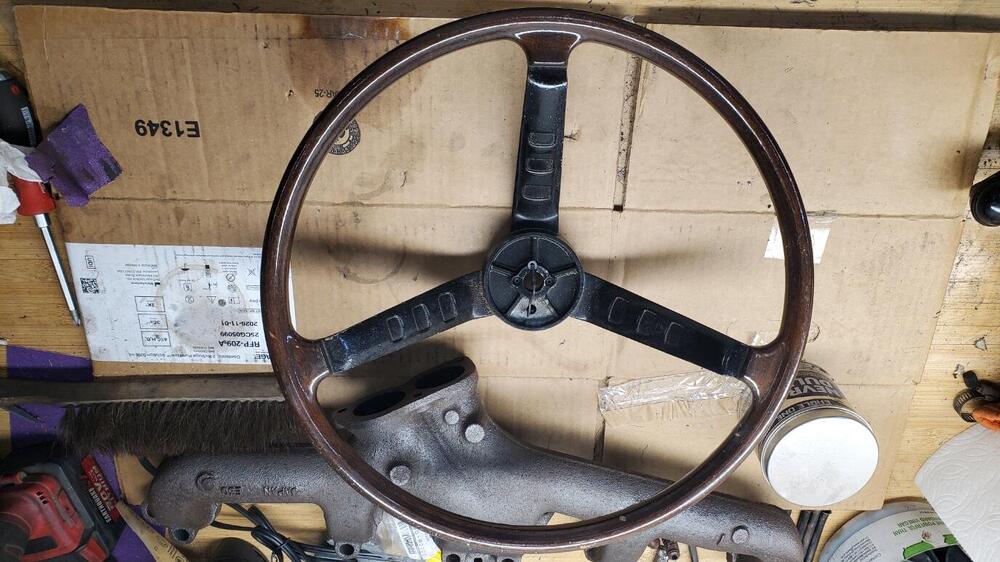 The body shop work continues and looks like things are moving along nicely. I am happy to see that they are being very thorough and even cleaning up areas that no one will ever see. I did check the seat mount locations. The rear inboard bracket on both the drivers and passengers side is off by about 2 inches (both are too far outboard). Carlos has a welder and will do the re-mounting of the bracket. I did contact Larry, the original metal work guy, to point out the error. Looks like we will get that re-mounted for no additional cost. I also sent pics of the dimesnions from the seat rails. The dimensions that I measure are 13.0" wide (330mm) and 12.75" deep (324mm). I removed the air galley from the exhaust manifold, but was not able to salvage it. After repeated heating, cooling and lube applications, I was only able to get 2 of the fittings out. By this time, the hex portion of the remaining fittings were starting to get pretty trashed, so I ended up cutting the tubes on the remaining 4. Fortunately, I did not have to do any re-tapping of the four difficult fittings. I was able to drill away most of the metal in the center of the fittings and sort of peel the threads off of the manifold. This made is easy to save the extension tubes that are secured by the fittings. On all of the previous cars that I have restored, I have always used a gray powder coat finish on the exhaust manifold that Les Cannady at Classic Datsun Motorsports always uses. Since we want to be very exact on the reproduction, I was considering a high temp cast iron paint which would be closer to the original color. However, it was noted that those typically peel even with the best prep and application. POR 15 was recommended, but again, this ends up being a colored paint and softens the texture of the original cast iron and doesn't really replicate the original color. I eventually phoned Rod Schmitt of Rod's Garage (Restorer of the 2025 JCCS Best of Show Red 240Z and John Morton's 1st place Green 240Z in the 240Z category) to find out what he uses for the final finish on the exhaust manifold. Rod says he cleans the manifold well with wire wheel and then uses a couple light coats of graphite spray for the final finish. He says this comes the closest to the original color and finish. It also handles the high temps well. So, this is the current plan for the exhaust manifold finish. I have started cleaning up some of the steering column parts. Some before and after pics are attached. It looks like these components have been accessed previously as the turn signal mechanism had a wire that was just twisted together with an extension on the horn circuit, so I removed the extension and soldered the wire in place. It has a broken connector which I thought I could replace with another signal mechanism that I have but that replacement was just as brittle as the broken coneector, so I just ordered a new one. Also, the headlight mechanism looks surprisingly good, so I am thinking that may have been replaced as it looks virtually brand new. Typically, these are pretty gummed up and the white parts are yellowed and/or dirty. This one looks untouched. I will re-restore the steering wheel as the previous restoration is poor. The black paint is thick and uneven and should be a satin finish, not gloss. The 'wood grain' portion has a heavy gloss finish, should be light satin or semi-gloss, and the back side with the 'nubs' was over sanded so the wood grain appearance is missing on the nubs.