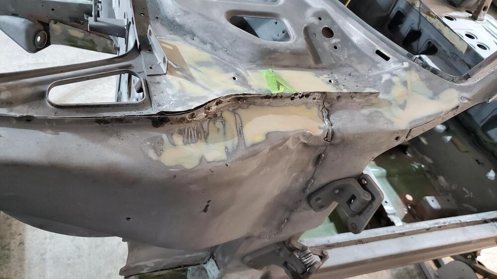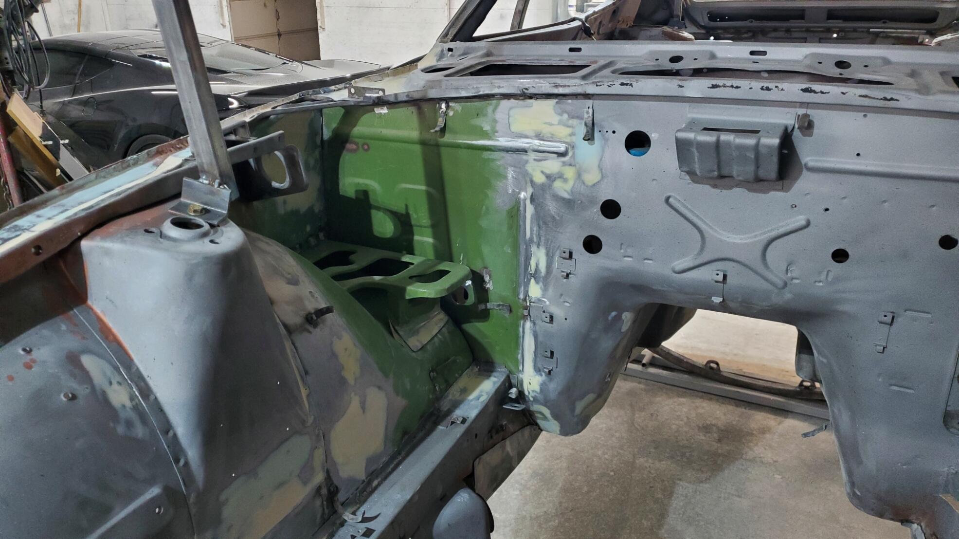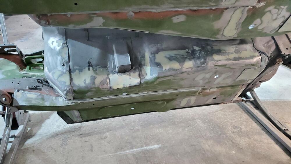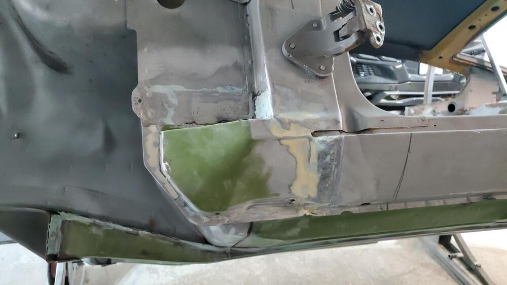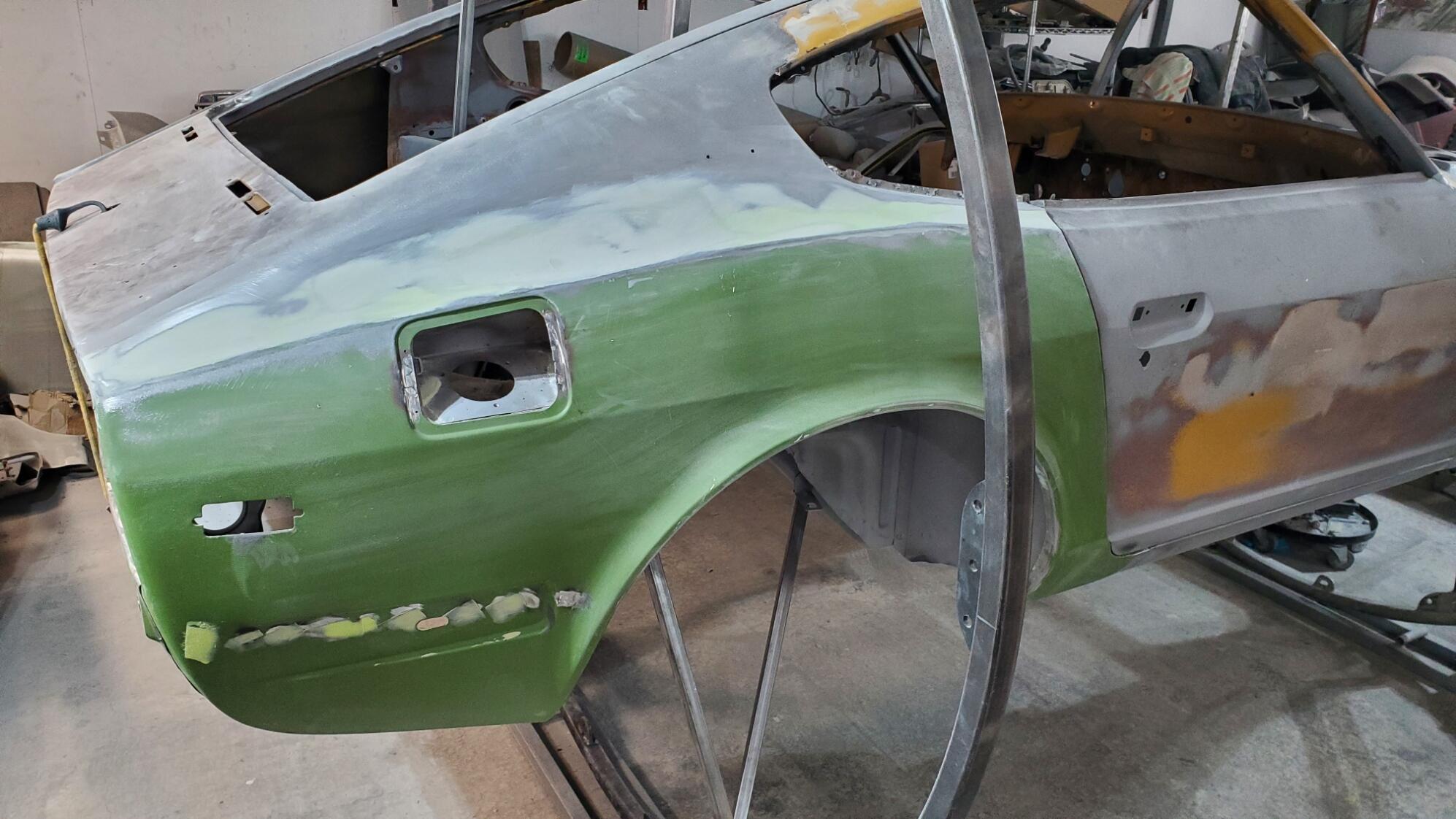 The body shop work continues and looks like things are moving along nicely. I am happy to see that they are being very thorough and even cleaning up areas that no one will ever see. I did check the seat mount locations. The rear inboard bracket on both the drivers and passengers side is off by about 2 inches (both are too far outboard). Carlos has a welder and will do the re-mounting of the bracket. I did contact Larry, the original metal work guy, to point out the error. Looks like we will get that re-mounted for no additional cost. I also sent pics of the dimesnions from the seat rails. The dimensions that I measure are 13.0" wide (330mm) and 12.75" deep (324mm). I removed the air galley from the exhaust manifold, but was not able to salvage it. After repeated heating, cooling and lube applications, I was only able to get 2 of the fittings out. By this time, the hex portion of the remaining fittings were starting to get pretty trashed, so I ended up cutting the tubes on the remaining 4. Fortunately, I did not have to do any re-tapping of the four difficult fittings. I was able to drill away most of the metal in the center of the fittings and sort of peel the threads off of the manifold. This made is easy to save the extension tubes that are secured by the fittings. On all of the previous cars that I have restored, I have always used a gray powder coat finish on the exhaust manifold that Les Cannady at Classic Datsun Motorsports always uses. Since we want to be very exact on the reproduction, I was considering a high temp cast iron paint which would be closer to the original color. However, it was noted that those typically peel even with the best prep and application. POR 15 was recommended, but again, this ends up being a colored paint and softens the texture of the original cast iron and doesn't really replicate the original color. I eventually phoned Rod Schmitt of Rod's Garage (Restorer of the 2025 JCCS Best of Show Red 240Z and John Morton's 1st place Green 240Z in the 240Z category) to find out what he uses for the final finish on the exhaust manifold. Rod says he cleans the manifold well with wire wheel and then uses a couple light coats of graphite spray for the final finish. He says this comes the closest to the original color and finish. It also handles the high temps well. So, this is the current plan for the exhaust manifold finish. I have started cleaning up some of the steering column parts. Some before and after pics are attached. It looks like these components have been accessed previously as the turn signal mechanism had a wire that was just twisted together with an extension on the horn circuit, so I removed the extension and soldered the wire in place. It has a broken connector which I thought I could replace with another signal mechanism that I have but that replacement was just as brittle as the broken coneector, so I just ordered a new one. Also, the headlight mechanism looks surprisingly good, so I am thinking that may have been replaced as it looks virtually brand new. Typically, these are pretty gummed up and the white parts are yellowed and/or dirty. This one looks untouched. I will re-restore the steering wheel as the previous restoration is poor. The black paint is thick and uneven and should be a satin finish, not gloss. The 'wood grain' portion has a heavy gloss finish, should be light satin or semi-gloss, and the back side with the 'nubs' was over sanded so the wood grain appearance is missing on the nubs.