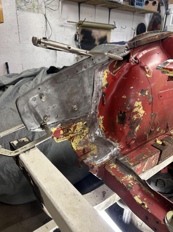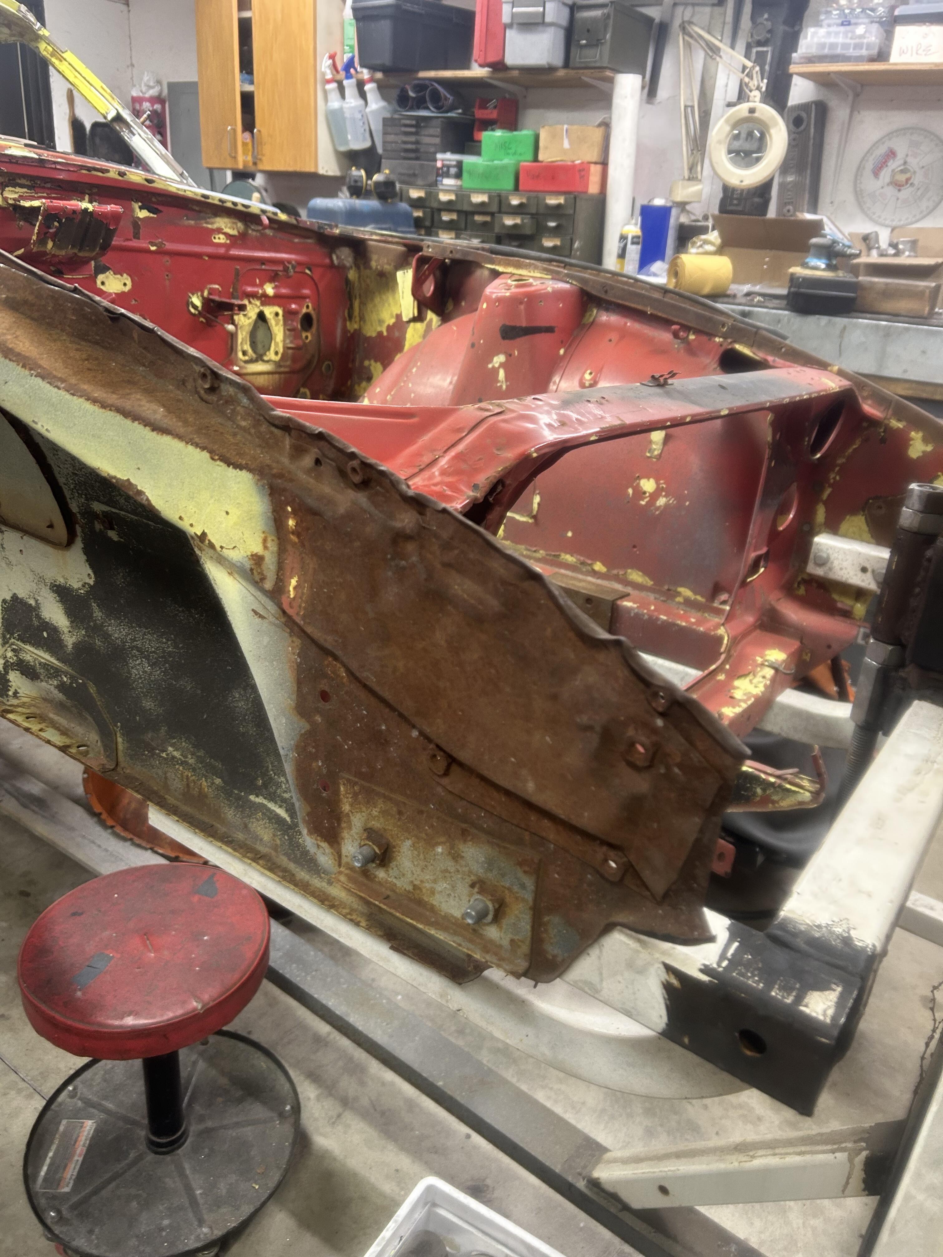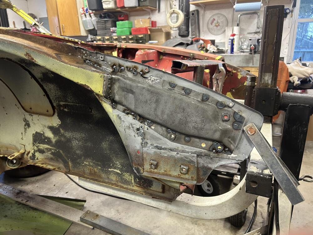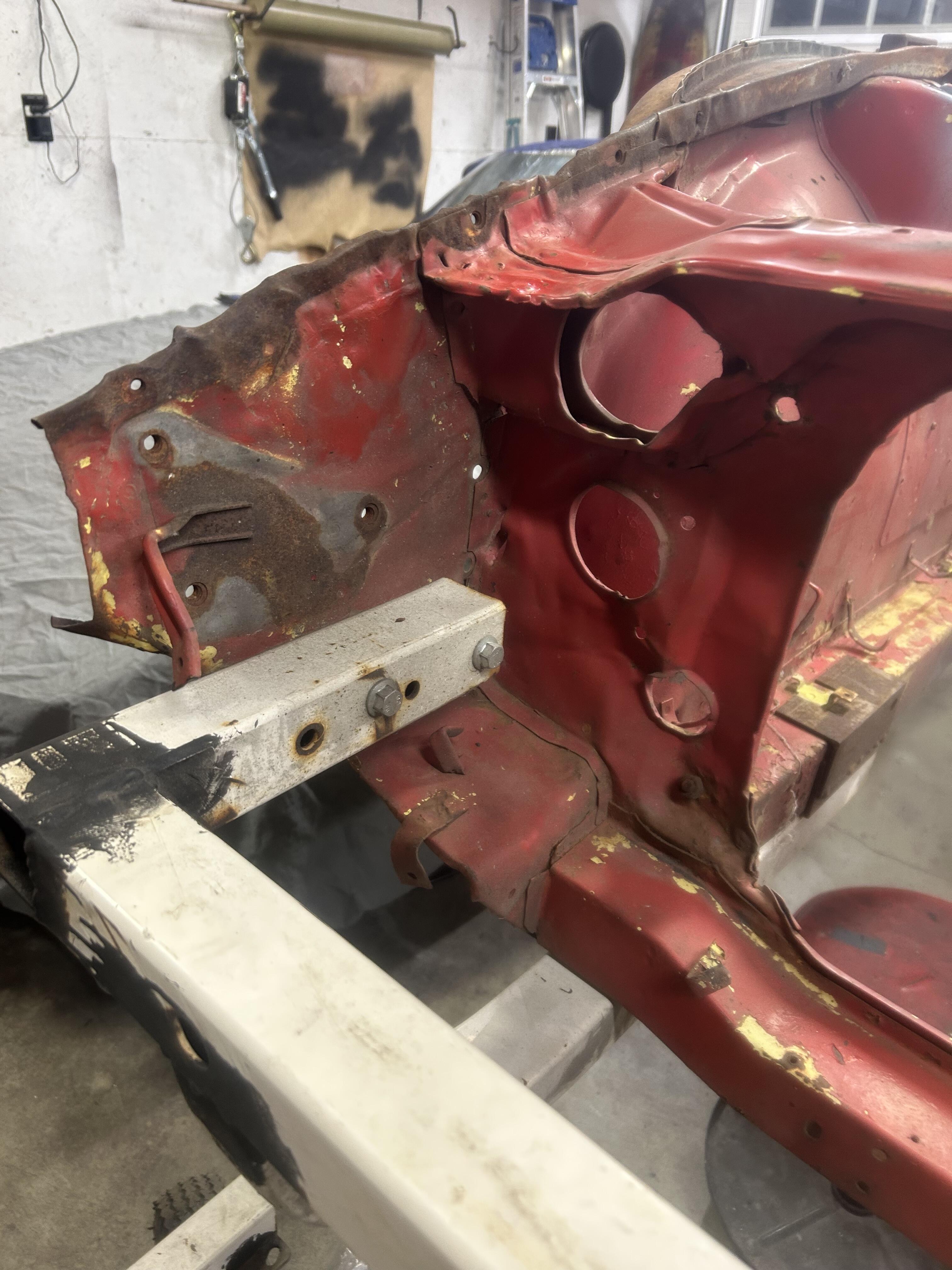 First project after getting the roof attached was the passenger front fender support . I had cut up two 240z’s years ago and had a whole front clip left. No easy way to do this either .I was tempted to buy the sections from KF so I wouldn’t have to disassemble the front clip . In the end it worked out .