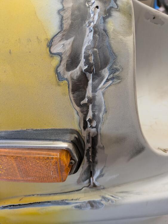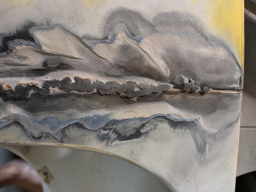 Man this guy wasnt a good welder. Instead of cleaning up the welds he just added 1/2 inch of bondo to smooth over it. Luckily 70% of the welds didn't even penetrate so they were easy to cut off