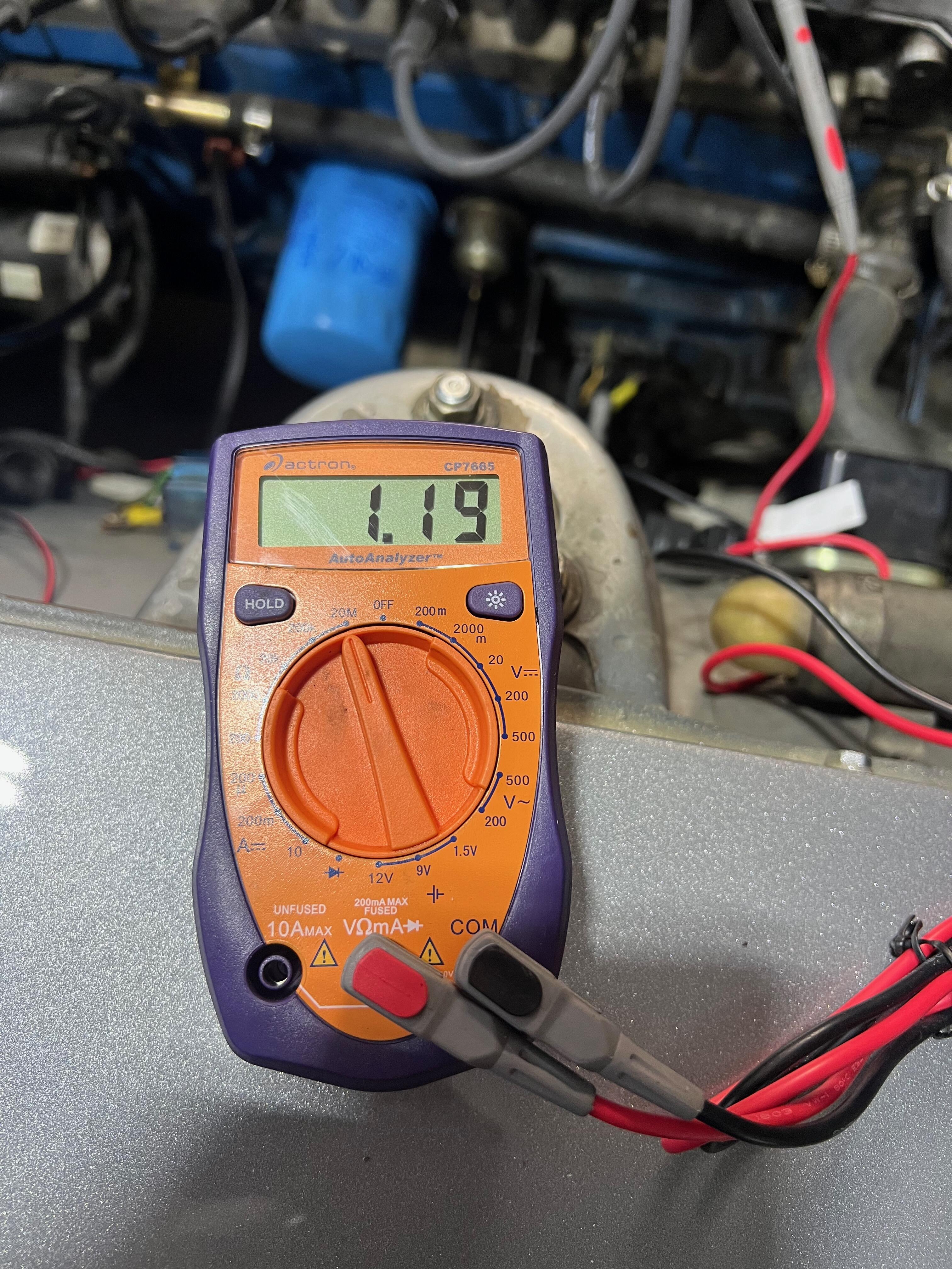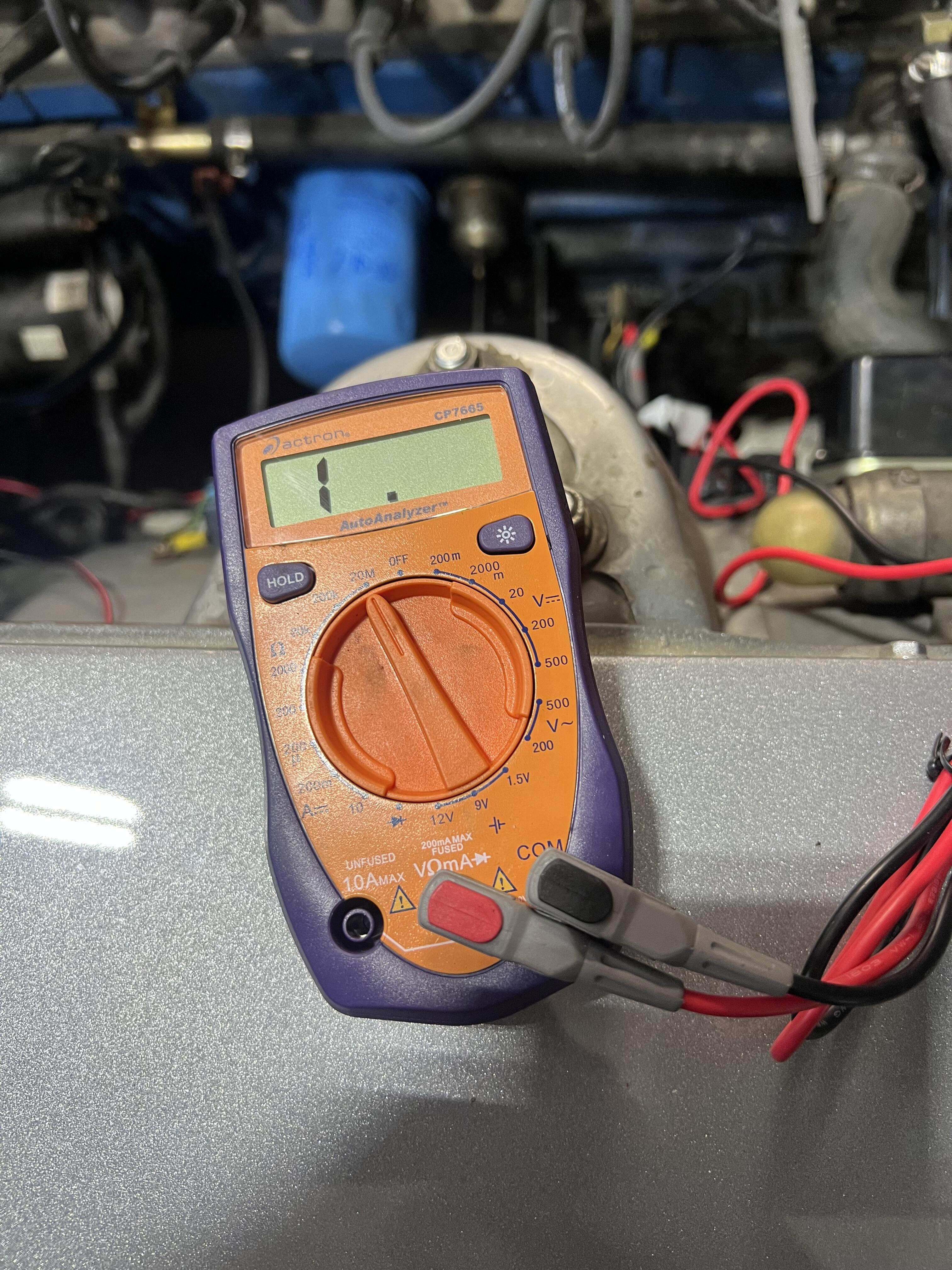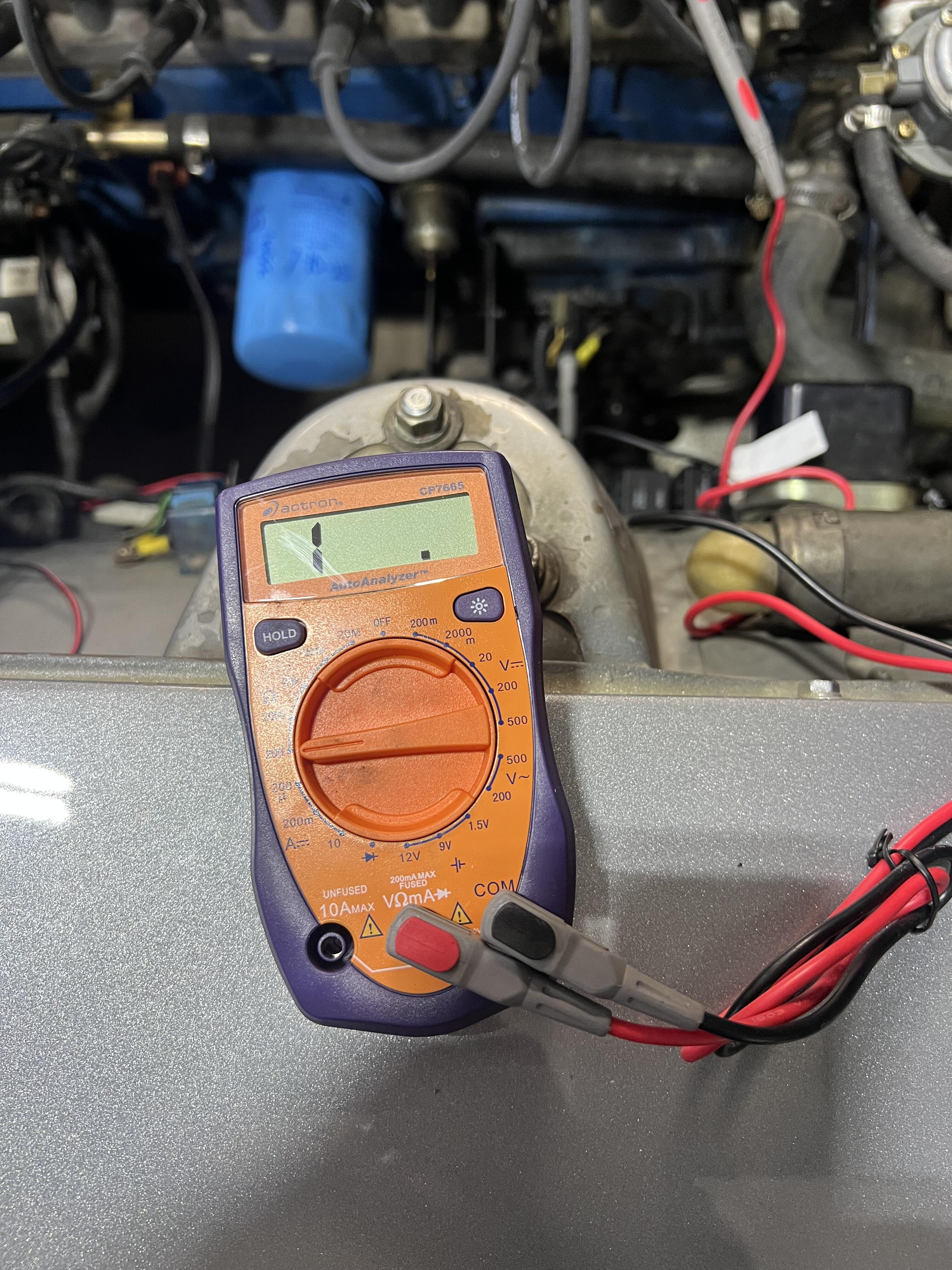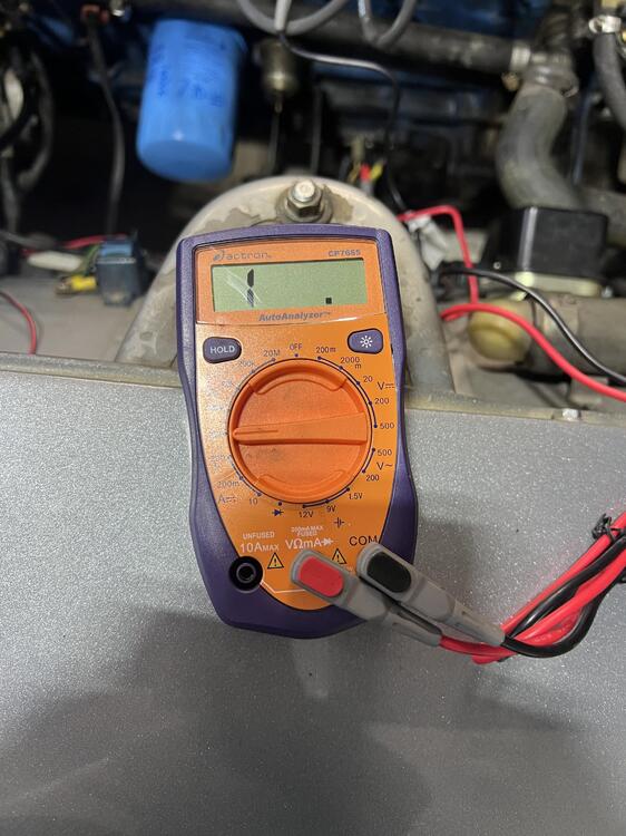 Correct, the battery is disconnected. Here are the readings, but I did both high and low settings...... With the Positive lead connected to the ballast, here are the readings: