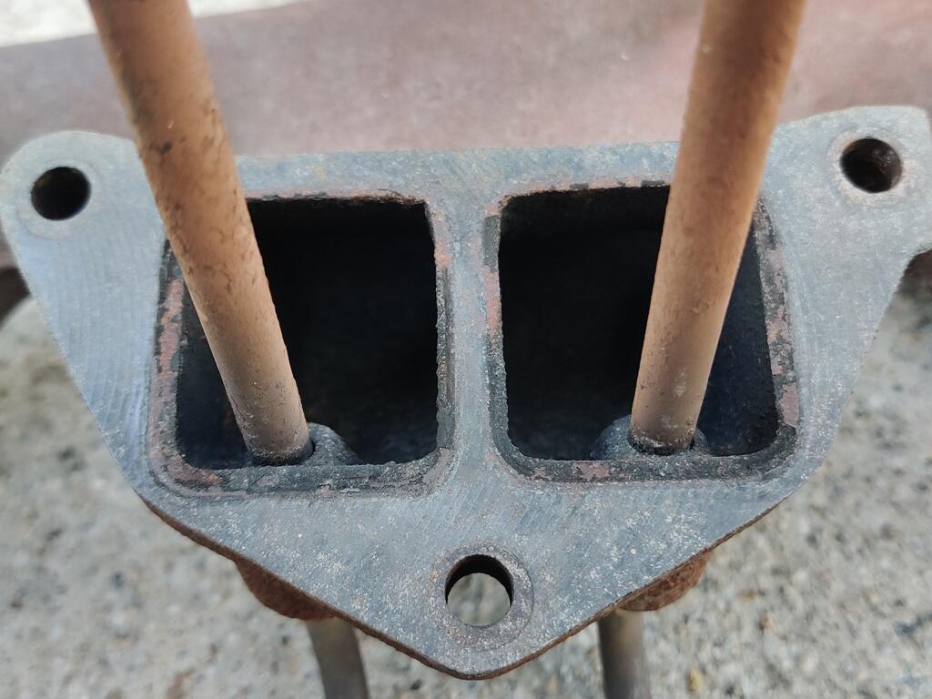 2. I am a bit dubious regarding the "correct" finish of the exhaust manifold. I do not think there was any kind of coating put on it by Nissan originally, so... wouldn't it just be a typical cast iron (as cast) color? If so, I think what you have there @motorman7 looks accurate. Not that this would necessarily be good reference info, but I personally kind of think it is - here are a few pics I just took of my 6/71 car's original exhaust manifold. The car was originally owned and driven in AZ for at least several if not all of its years on the road, and then stored in a garage in Colorado AZ for 30 years... Honing in on a "least rusted" portion: Machined (and not rusted) surface:
