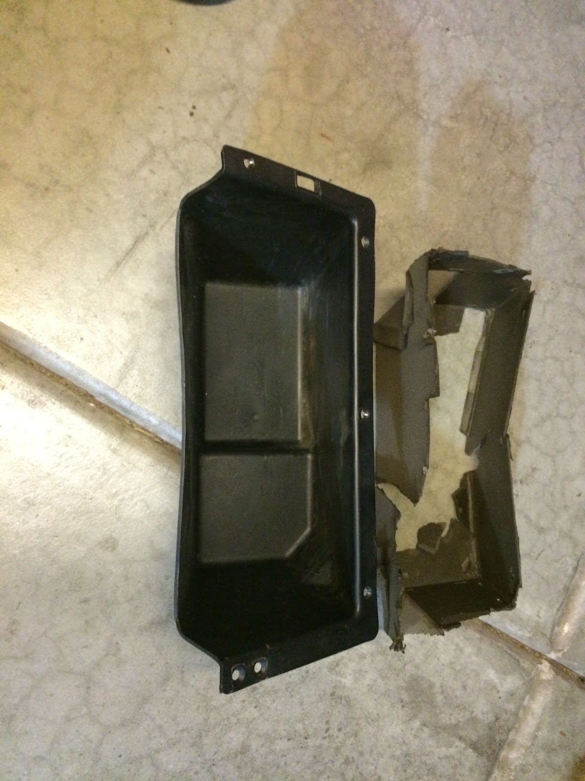 For all those with the original style paper/cardboard glove box insert (left image) in their 240z, I found a cheap and easy way to upgrade to a plastic insert from a later 280z (right image).  I picked my used 280z insert up for $10 on ebay a while back.
