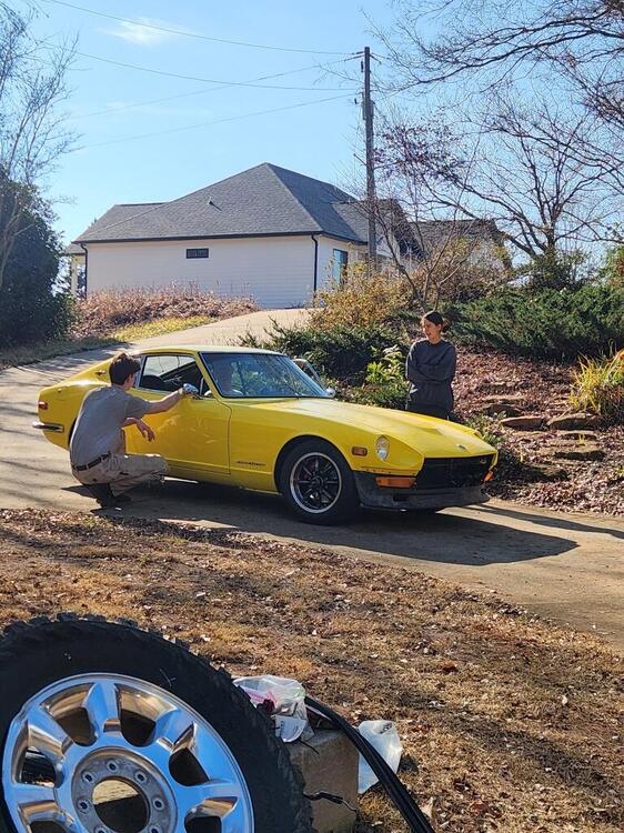 So just a little progress of working on my 1972 240Z that I’ve resurrected twice now since I’ve owned it from 2005 or so ..it’s been a long project and not perfect but it was my daily driver . This is where it sat for 8 years untouched next to my 1988 Toyota pickup in December 2024 All loaded up for the 1500 mile return trip in my 1986 f350 diesel I pulled from a field for 500 bucks a year earlier Once I got it home I got it running pretty easy but noticed an immediate problem in the form a rattling noise from the timing cover to discover a broken tensioner and missing bolts . After that issue was fixed I decided it was time to install my big brake kit I got from a junk yard 260z about 15 years ago .. don’t know who made the brackets but the calipers and rotors are from a 90’s corvette .. 12 inch rotors too ..don’t worry about the wheel studs they have been replaced since It also needed the carbs tuned As you can see they were way off plus I discoved the carbs were loose too ..explained why the erratic idle lol I just had to get a star road shift knob Radio was full or rodent crap and figured why not add a wide band afr gauge from auto meter in its place along with my driving light switch ..I still haven’t cleaned the marker off Also had to make my own headlight relay upgrade to run flosser h4 90/100watt ralley lights It’s an L28 with N47 head from a 1979 280ZX upgrades include 45dcoe triple Webbers . Msa 3 into 2 headers msa stage 3 schneider cam along with schneider valve springs Holley blue fuel pump . Kameari Racing distributor and fidanza light flywheel with centerforce clutch . Also running a single grove dampener . I will get the engine rebuilt in the future and get it up to 10.1 cr so maybe I’d get more out of the mods I have ..but still runs great and sounds amazing .7 points