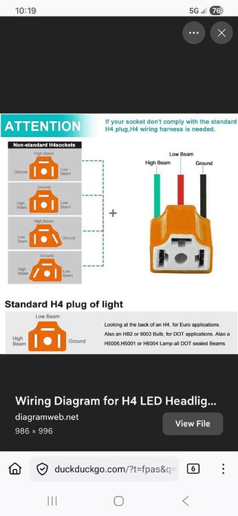 6 pointsOn another note, I figured out my headlight issues. So the H4 LED's I have are interesting. This is the typical H4 pin locations So when I attached power to the ground location on the LED and tested the other pins the Hi's and Lo's work fine. But they also work fine no matter where I attached the power into the bulb. Very strange So the Phenolic at the bulb has these labels I decided I would wire it this way. Power in on the right side and high beam (red w white) on the left hand side. I then took the other headlight out and made it match. Now everything works as it should. The indicator is on in high beam and completely off in low beam. Another thing off the list6 points