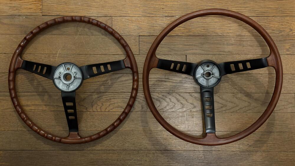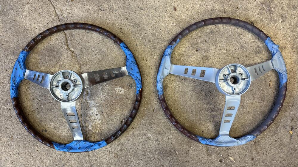 What an amazing restoration! I only wish I had this much reference material available when I redid my car 15 years ago (not that I could have approached this level of quality). I see what appears to be light reflected on the spokes of the steering wheel, suggesting the finsh is a semi-gloss or gloss. The original finish on the spokes and hub was a non-reflective satin black.3 points