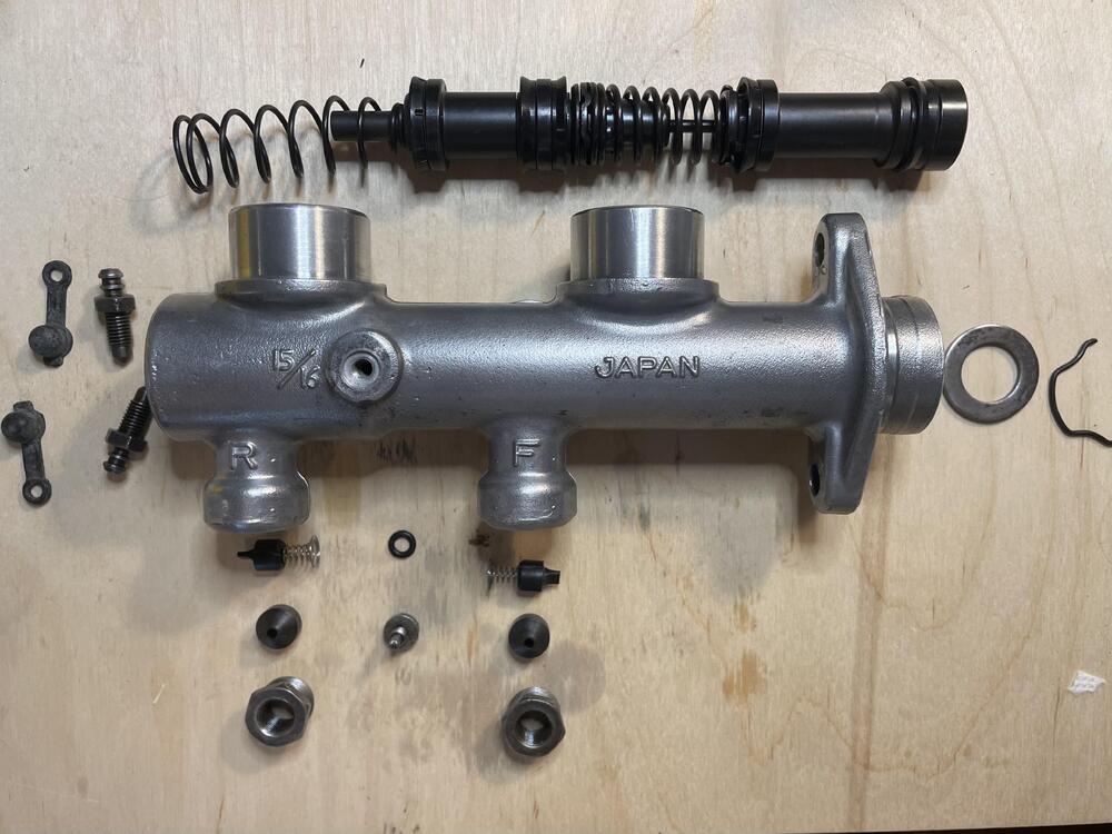 3 pointsI’ve been negligent in keeping this up to date, but I have been posting regularly on Instagram, so I’ll spend the next few days copying those updates over to here to catch you all up on my progress. ••• June 26, 2025 280ZX Brake MC is ready to go! I tore this apart several years ago thinking it would be a short project, but the rebuild kit I had turned out to be for the one made by Tokico (large perforated disc residual valves) and this one is made by Nabco (small rubber duckbill residual valves). I messed around with rejuvenating the reservoirs. I read using a mix of oxy clean and hydrogen peroxide gel under UV light for 24 hours would take the yellow out. It lightened them, but they’re still clearly yellow. Super clean, though. I also did some chemistry on the hardware. The bleeders and reducers for this thing are not common sizes (the reducers are m16x1.0 to m10x1.0) and after two weeks of searching for replacements I gave up and decided to try chemically treating them. I didn’t want to do the hardcore hot bluing or zinc methods because, so I used the rust bluing method. Basically, you soak them in white vinegar to strip off the rust and zinc. Then you paint them with a paracetic acid / salt solution (8 parts hydrogen peroxide:1 part white vinegar + as much salt as it will dissolve). Dry it with a heat gun and throw it into a double boiler. You’ll see the rust turn black as it changes into iron oxide. Buff it with steel wool and repeat until satisfied, then soak for 24 hours in motor oil. They came out okay. I was hoping they would look more like the pistons, but this is after four rounds, so it’s good enough. Fingers crossed that they don’t immediately corrode. You could also do the phosphoric acid version (cold bluing), but this makes a harder coating. Then I just had to hone the cylinder, flush it with 91% alcohol, wipe it out, and reassemble. I kept the Tokico 240Z reservoir caps since I didn’t wire the car for the ZX caps with the fluid level sensors , plus I don’t have the metal or plastic Nabco caps. Maybe later if I can find a set for less than €53.40. It looks pretty good after test fitting it. I’m waiting for a dust cover and O-ring in the mail, then I can install it and bleed the brakes. ••• August 7, 2025 This is not hard… … if all the parts are there. I took these axles apart and found one of them had been rebuilt previously, and whoever did that lost one of the bearings and spacers. So what should have been three days of work, including paint drying time, turned into three weeks of figuring out how to replace them. I ended up buying a bag of 11mm chrome steel bearings that were close enough to the same (0.09mm difference) and some 10mm wear-resistant nylon rod to fabricate a replacement spacer. Even though I have tons of new bearings now, I only replaced the missing one just in case that difference matters. All in all the spacer came out well; not perfect, but close enough. The rebuild process is pretty straight forward. Search the Classic Z Cars forums for instructions if you need them. Getting the boot on the inner shaft is the hardest part. I recommend finding some plastic tube that fits over the shaft, pushing it into the boot, and sliding it on that way. Make sure you use the prescribed amount of grease, which is 10g (about 3/4 Tbsp) at the top of each bearing channel. Once I had everything nice and clean (citristrip, a wire wheel on the bench grinder, rust inhibitor) I sprayed them and got them back together. Another jam I got into was two of my u-joints had the wrong part in the right boxes, so I had to order new ones and wait for shipping on those. But an evening on my home made press and they were done. Next step is installation. ••• August 20, 2025 Well that changes things. I realized about six months ago that this car started life as an automatic. With this last step that crime has been rectified. Brass bushings. Artificial leather 5-speed knob. New seals and trim. ••• September 1, 2025 Initial systems tests (clutch, brakes, transmission) and… IMG_8948.mov It moves! I had some friends over to help me test the systems that makes this an actual car rather than a very expensive 1:1 scale model. Everything seems to be working correctly. We didn’t get too far, though, because my fuel return and carburetor cooling system is leaking directly onto the header. So, test cut short, but massive fire averted. My wife was thoughtful and made a quick video of the car’s first roll under its own power, complete with my dog barking at everyone. ••• November 7, 2025 Well, I had planned to be wrapping up something else, but I’m having some issues with the paint, so here’s something else I did on the side instead: hatch latch & lock plus the rear bumper with OEM rubber trim. I forgot to take any before photos of the latch parts, but suffice to say they were rough. Lots of rust and primer. Very little zinc. So I stripped and buffed them and hit them with some stainless-blast from Seymour paint. Looks decent. Better than the CAD yellow experiment I did on the window regulators. The button is the one that came with the car after some vigorous attention from some steel wool. It was rekeyed to match all of the other locks and installed with a gasket from JDM Car Parts (not OEM but fine) and a brand spanking new clip from Zedd Saver because I lost the old one. The bumper is the chrome version from @resurrectedclassics. I’d say it’s 4/5 stars. Great fit but the gauge of the steel is a little thin so the mounting tabs flex more than I would like when installing, and the chrome finish is not as smooth/nice as I expected. There are occasionally streaks (kind of like brush strokes) where the chrome built up or the steel wasn’t smooth before it was applied. If I had it to do over I would go with the stainless version. ••• November 16, 2025 Steps 1 through 5 of getting my Koito H4 headlight kit installed. The
