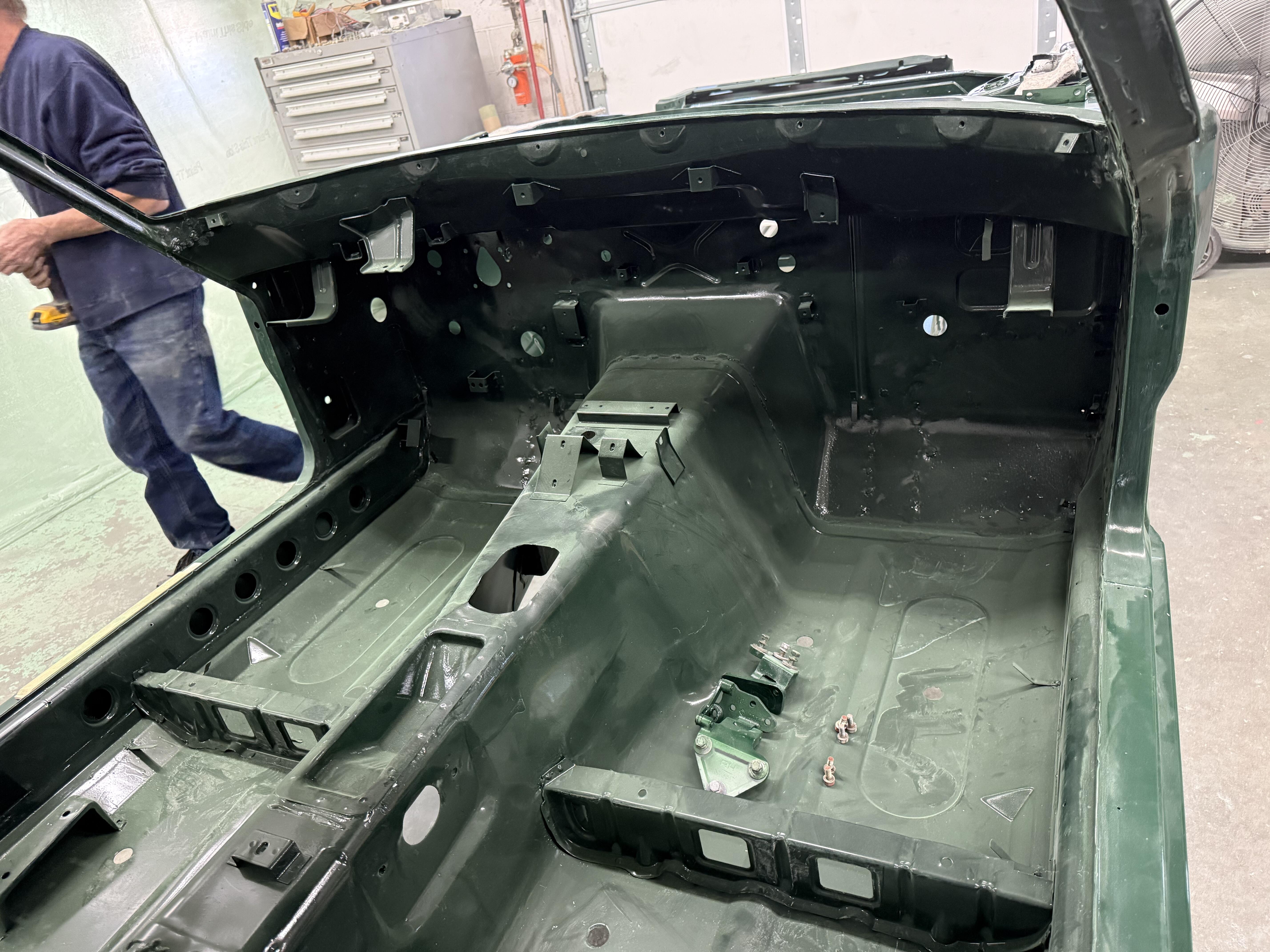 Been a while since showing 2446 bones…and she got good bones. Slowly finding time and discipline to prioritize some shop time. It is fun putting a few peices on the rear, dash will be coming out to recover. Had been a while since I have inverted to disconnect heater control cables….throttle lever cable at top of the gas pedal assembly…etc. rear panel is too dark, debating to reshoot to lighter shade….